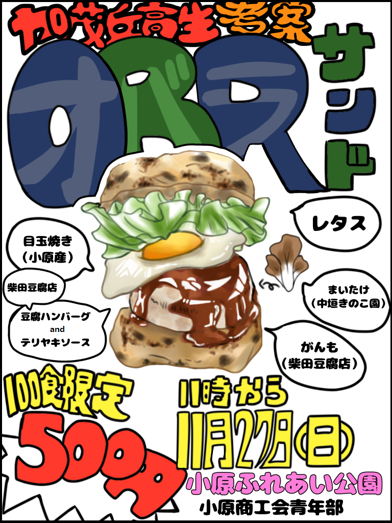 私たちは小原をより活性化させたいと思い、『OBRサンド』を開発しました。この料理は小原の特産品を使い、映えるように工夫し、新名物になってほしいという願いを込めました。 この料理でたくさんの人が笑顔になってほしいです。